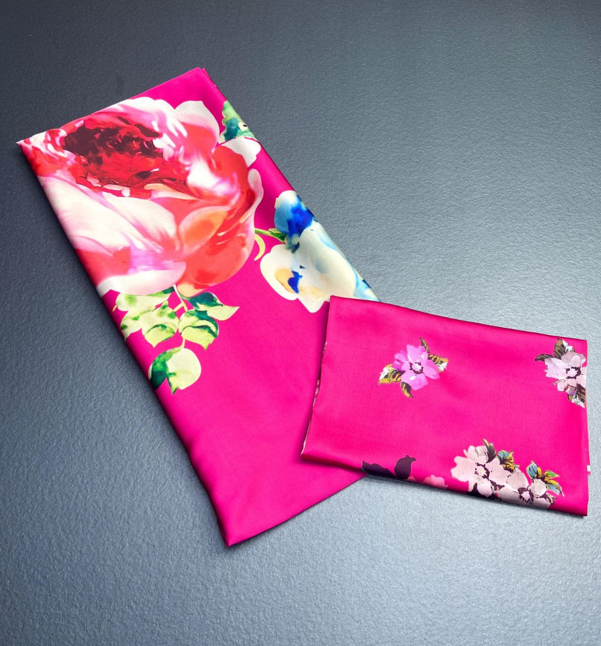 Embrace timeless elegance and modern flair with our exquisite Floral Digital Print Saree, crafted from the luxurious Original Japan Satin, also known as Devsena Satin.