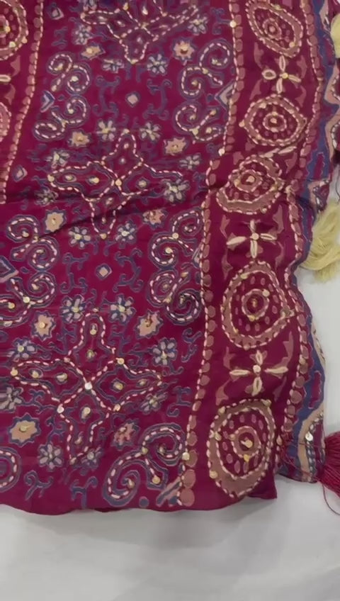 Saree Work: Hand Block Ajrakh Prints, Hand Kantha Work with Sequins