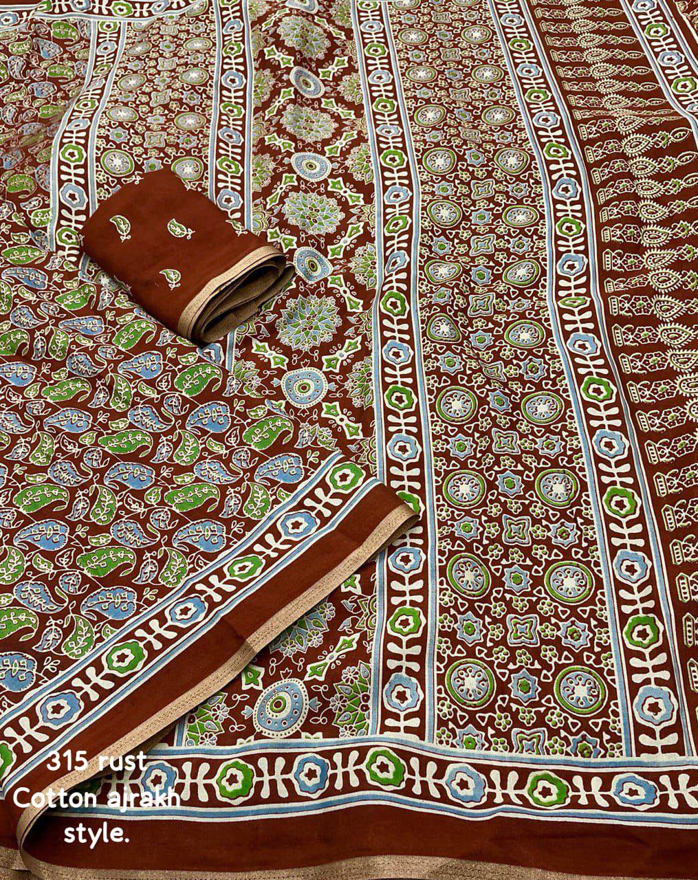 Perfect for everyday wear or festive occasions, this Ajrakh saree brings a blend of comfort and elegance to your wardrobe.