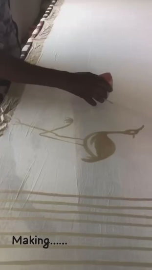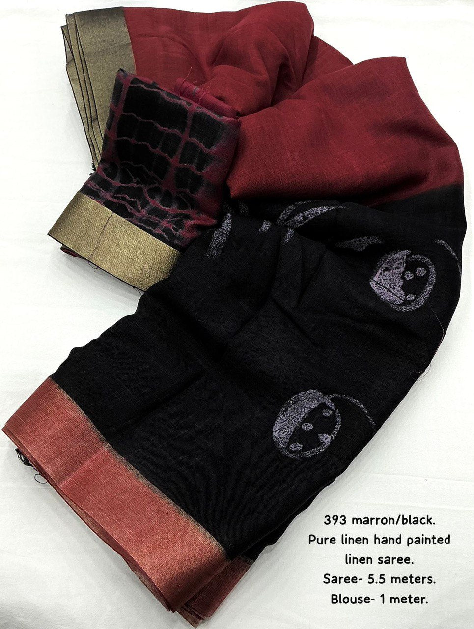 Experience timeless elegance with this beautiful handcrafted pure linen saree, designed with a blend of artistry and comfort. The saree features premium pure linen fabric adorned with hand-painted bird artwork and a zari woven pattern, giving it a rich, artisanal touch.