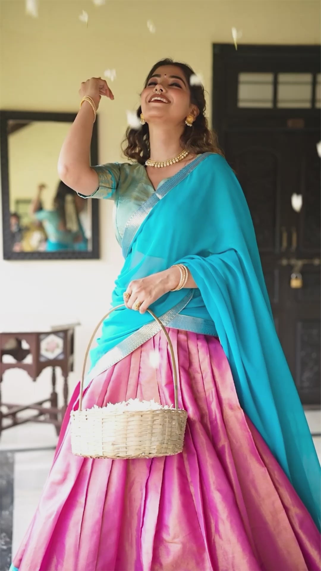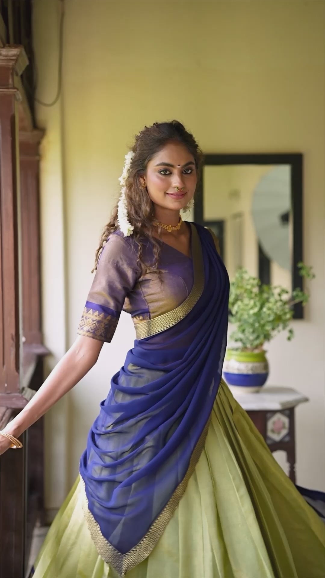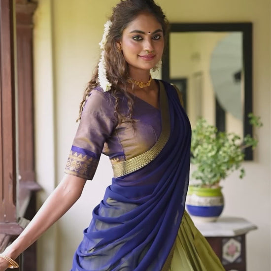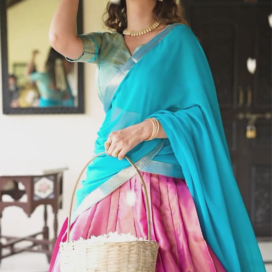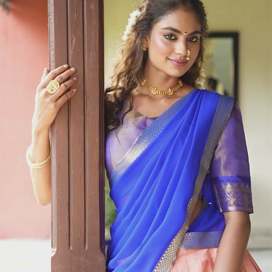 Experience timeless elegance with our Kanchipuram Lehenga Choli, crafted to perfection with luxurious zari weaving work that defines regal charm. This stunning ensemble combines traditional artistry with modern grace — ideal for weddings, festive occasions, and celebrations.