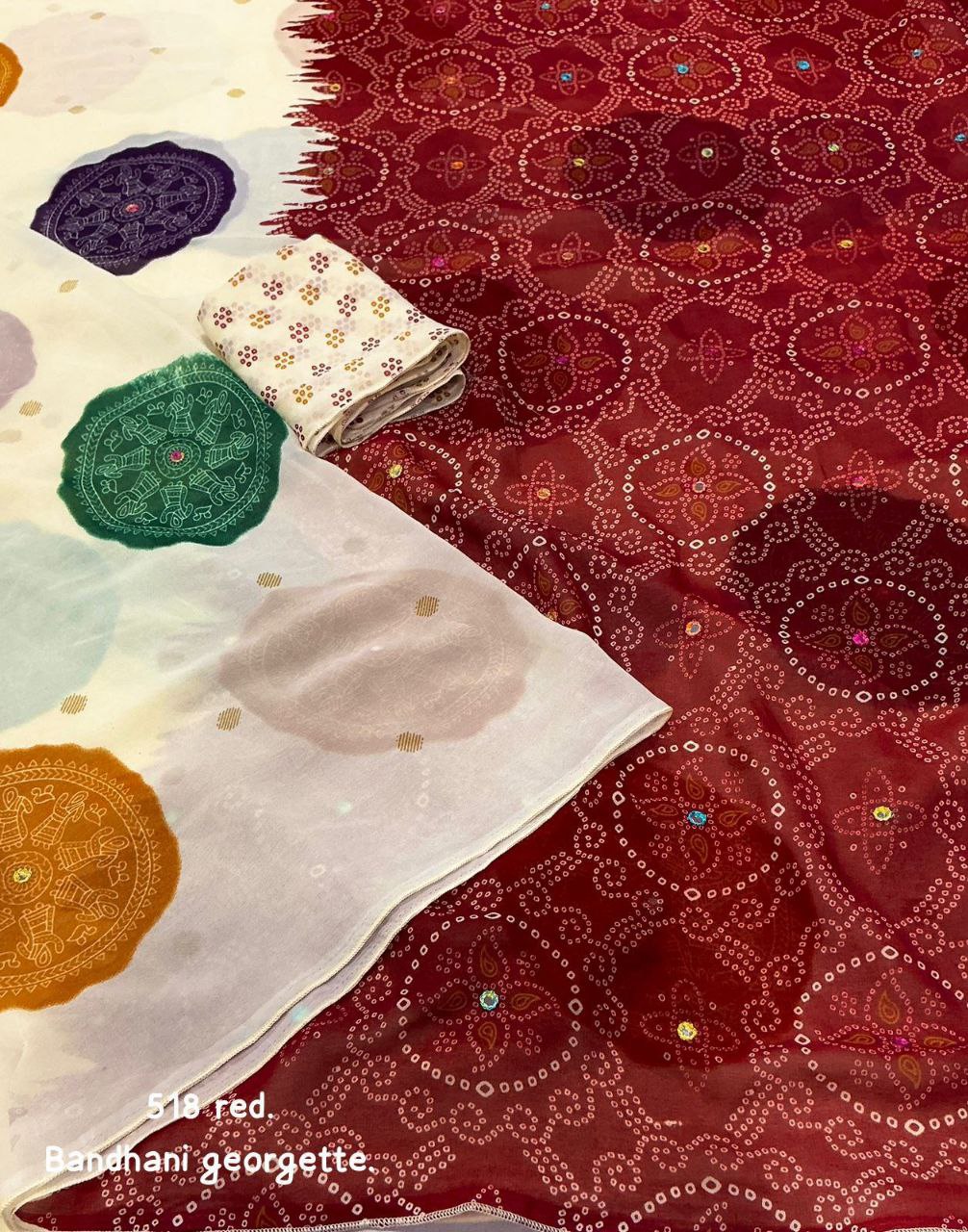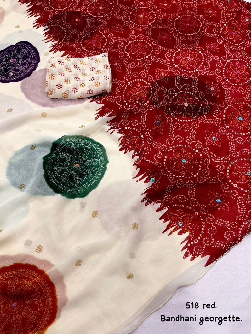 Women's Beautiful Aari Mirror Work Polka Bandhani Printed Georgette Saree With Blouse