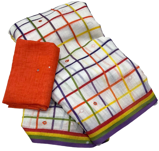Discover this beautiful linen digital printed saree featuring elegant aari mirror work, soft cotton tassels, and a stylish contrast printed blouse. Perfect for festive wear, office wear, casual outings, and daily classy styling. This lightweight linen saree offers comfort, premium fall, and stunning ethnic charm—ideal for modern women who love trendy yet traditional fashion.