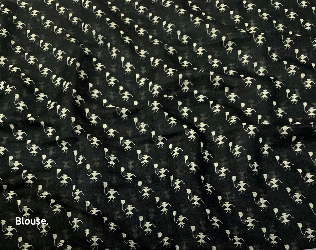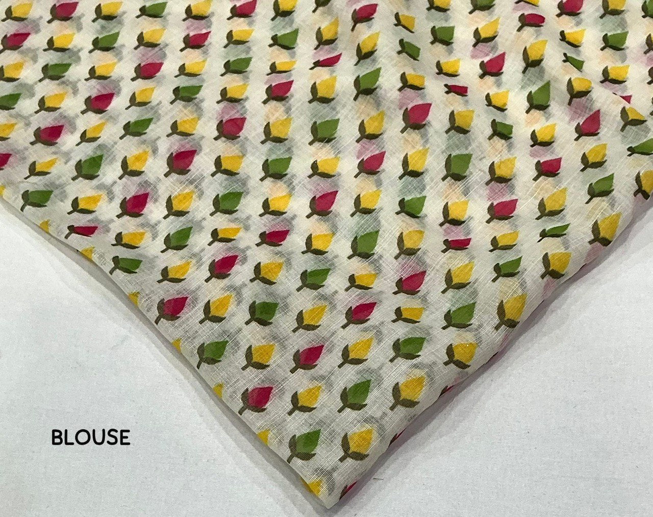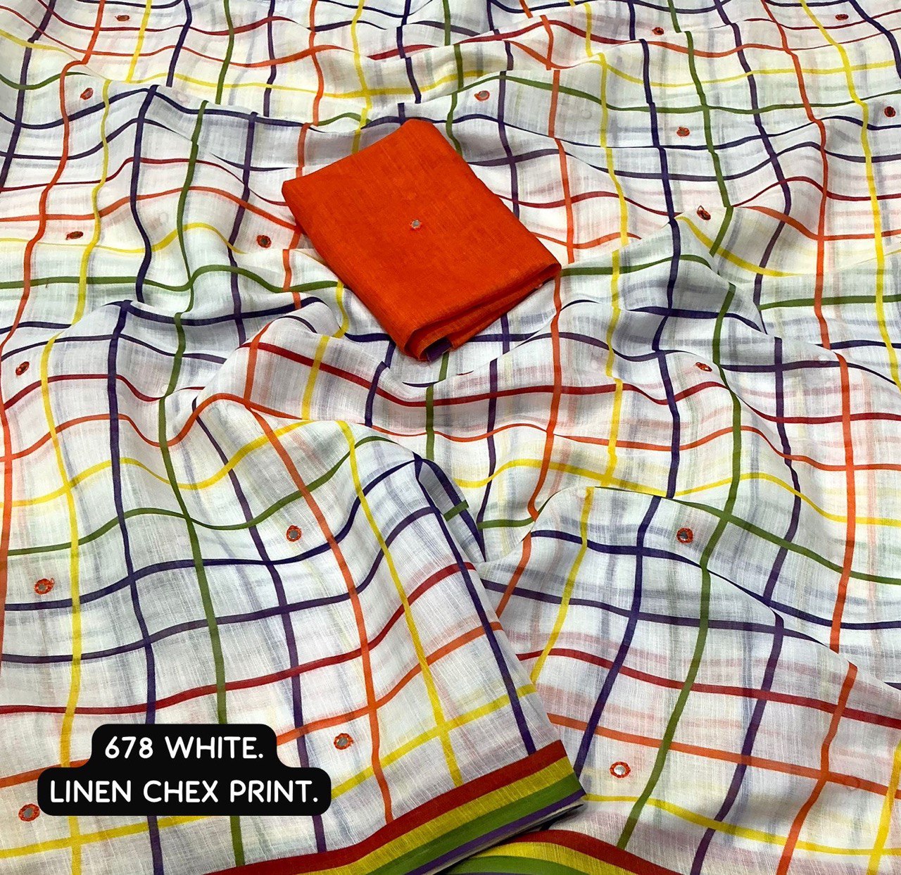 Aari Mirror Work Trendy Printed Designer Linen Saree With Running Blouse