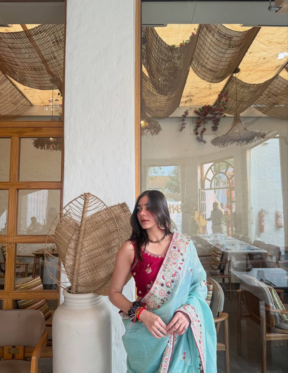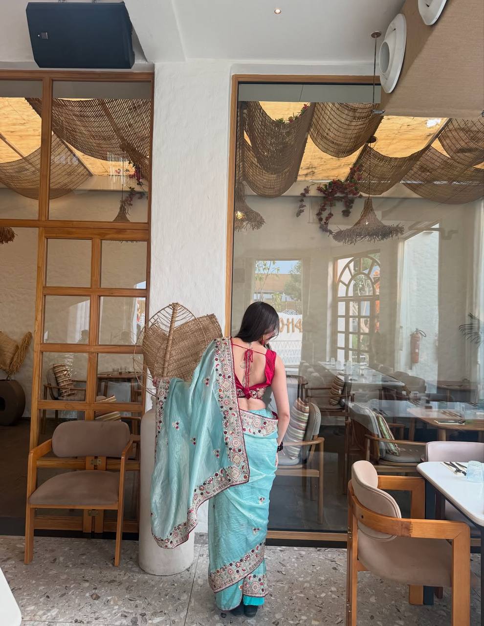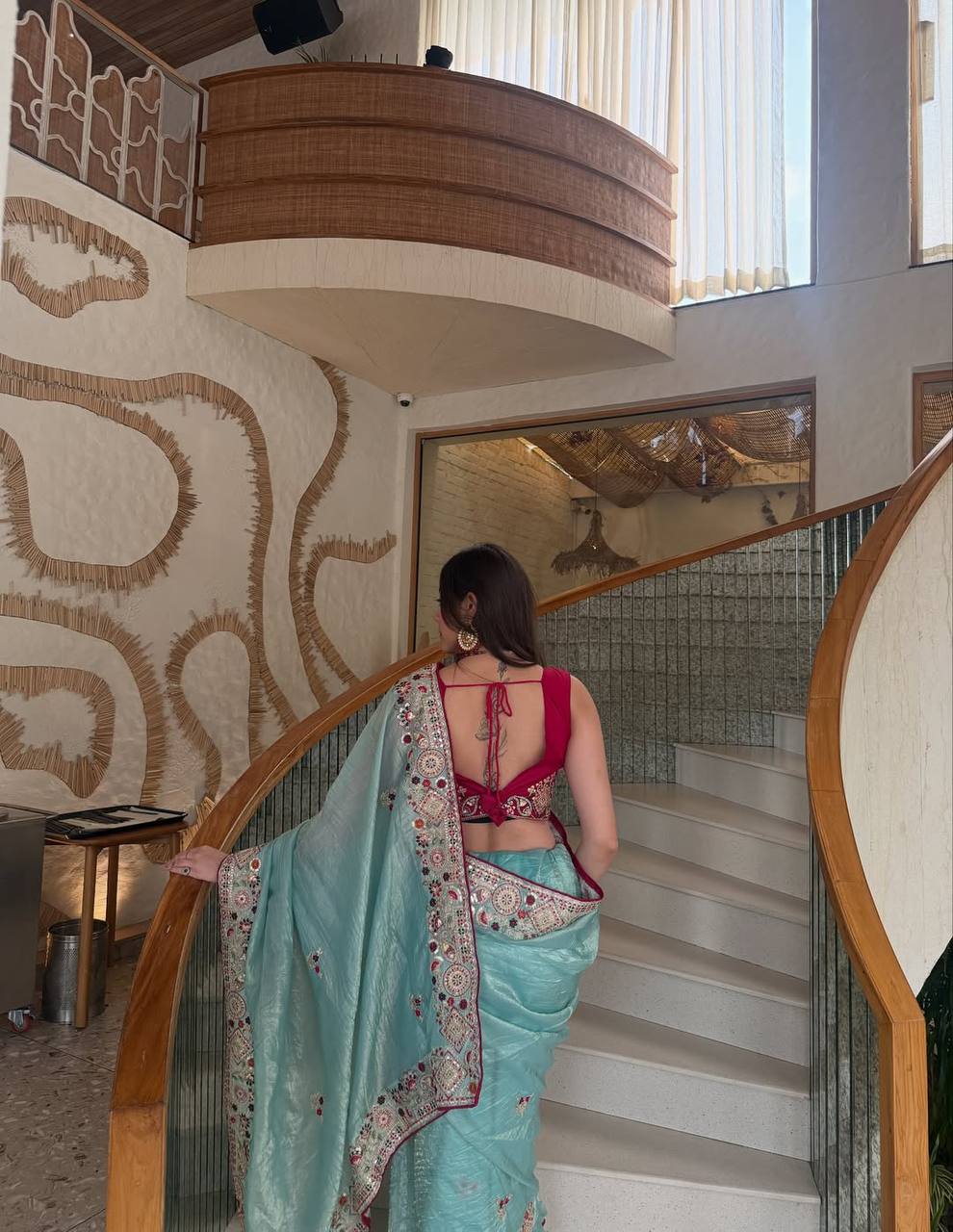 Style Tip: Pair with statement earrings and golden heels for a stunning ethnic look.