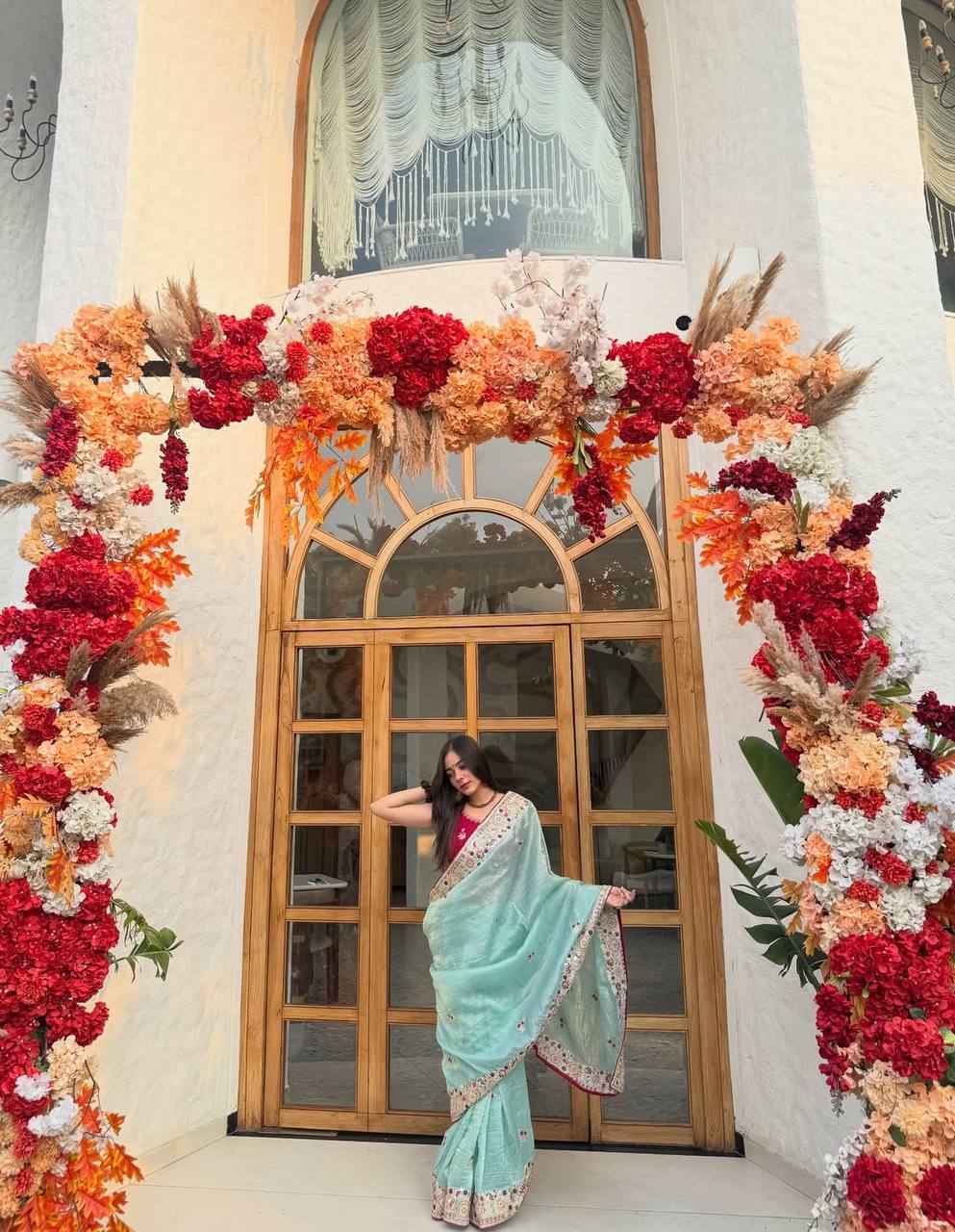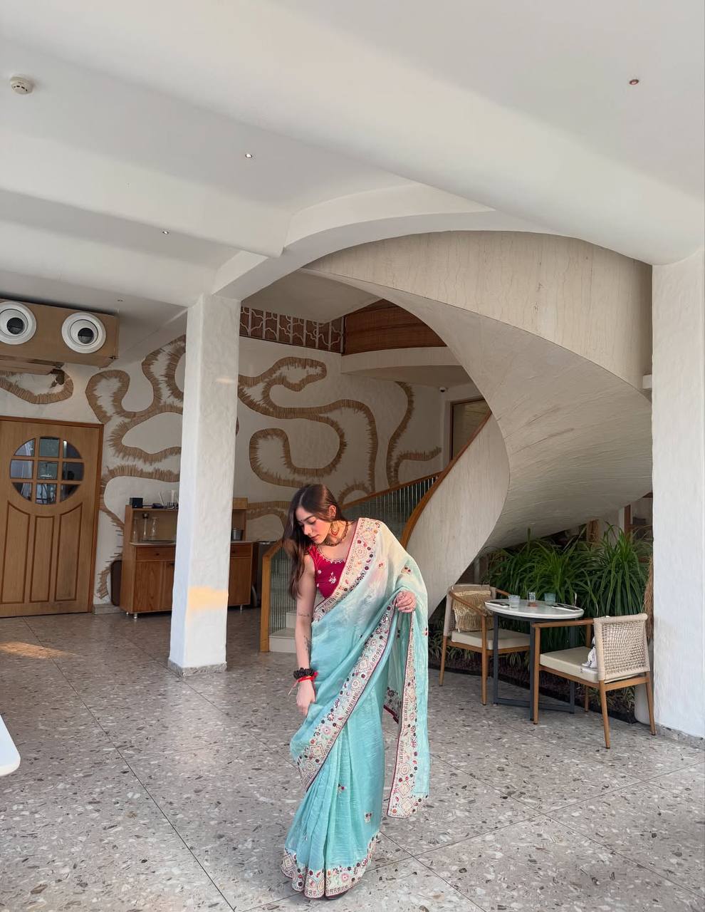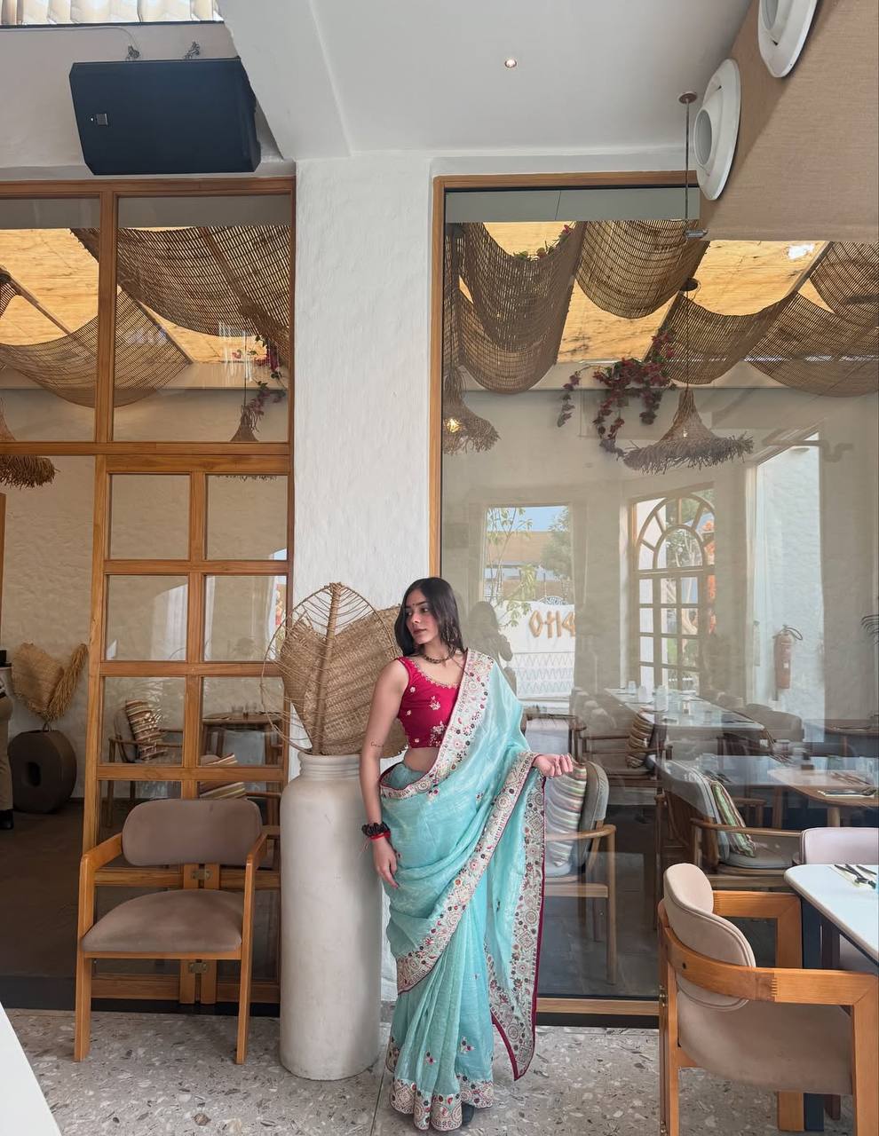 Style Tip: Pair with statement earrings and golden heels for a stunning ethnic look.