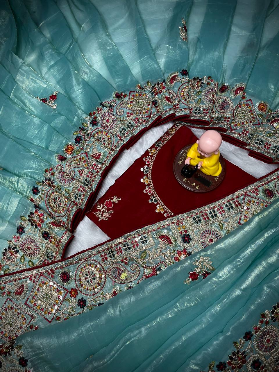Drape yourself in elegance with this Gold Crush Saree featuring exquisite C Pallu cording sequence work that radiates festive glamour. The saree is paired with a contrast matching Satin Banglory blouse beautifully adorned with delicate embroidery — perfect for weddings, parties, and traditional celebrations.