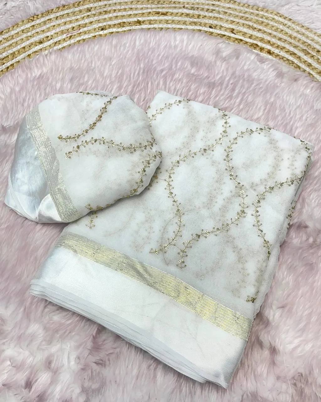 Step into timeless elegance with our Pure Viscose Georgette Saree, crafted to perfection for modern trends. Adorned with delicate embroidery work and a luxurious satin border, this saree is a true symbol of sophistication and grace. Perfect for festive occasions, weddings, and celebrations, it offers a beautiful blend of comfort and charm.