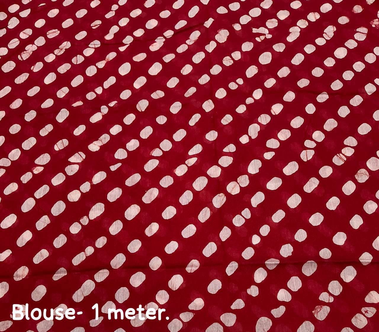 Handblock Polka Dot Batik Printed Pure Chanderi Cotton Saree With Blouse
