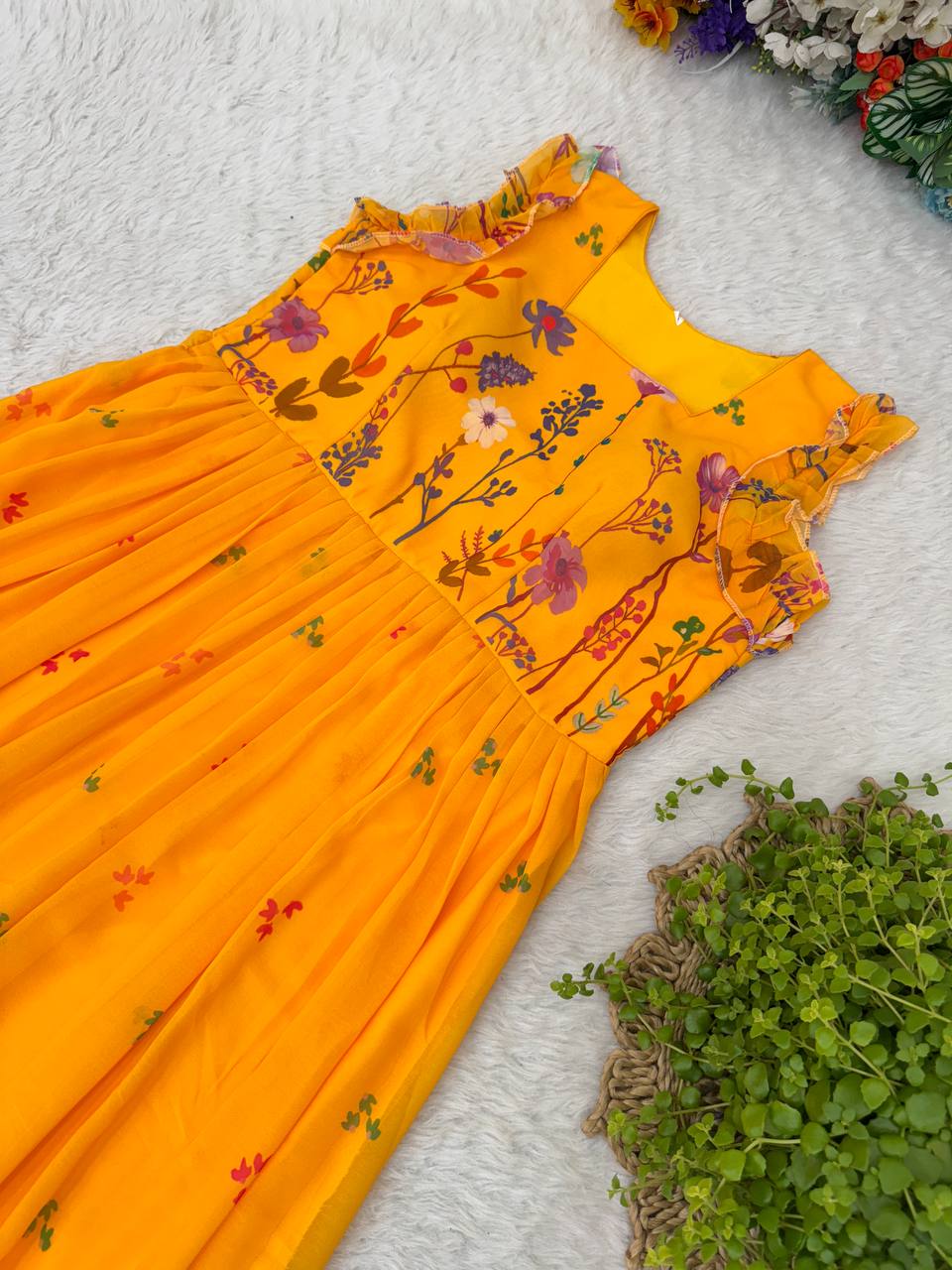 ✨ Fabric & Design: Crafted from premium heavy georgette with a vibrant digital print, this gown frock combines elegance with durability. The fabric offers a graceful drape and comfortable fit, perfect for special occasions.