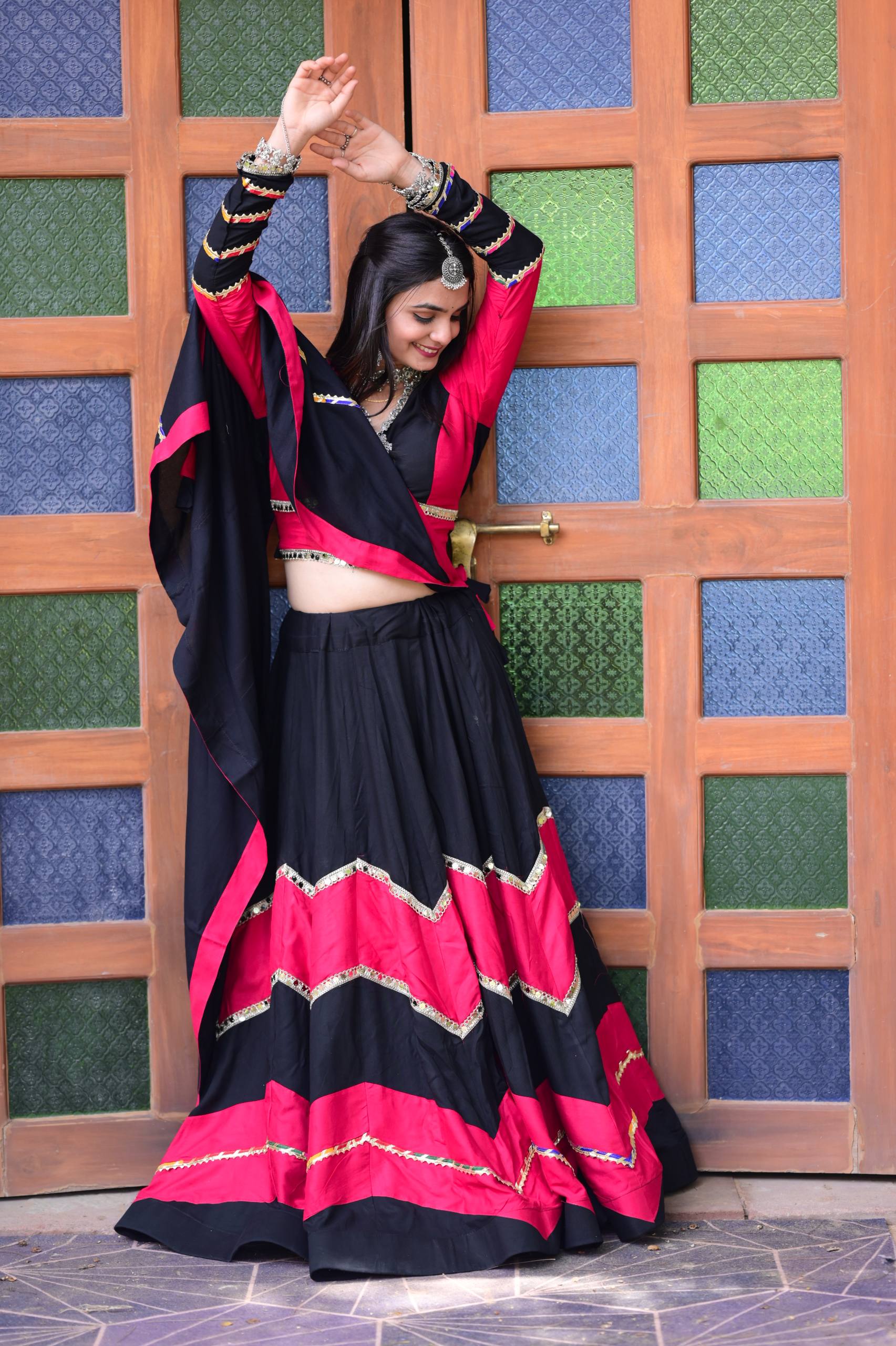 Perfect for dancing the Garba, attending festive celebrations, or making a statement at a special occasion. This stitched set is designed for a comfortable and flattering fit, allowing you to celebrate in comfort without compromising on glamour.