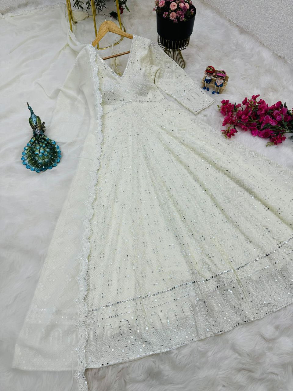 Step into elegance with this beautifully crafted Designer Party Gown, Pant & Dupatta Set, designed to offer a premium festive and party-ready look. Made from high-quality Fox Georgette, this outfit combines comfort, style, and flawless craftsmanship.