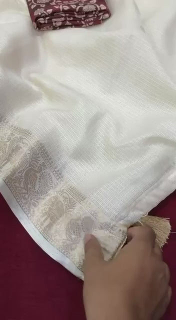 oft Kota Doria Saree with Zari Pattu Border & Kalamkari Crape Silk Blouse