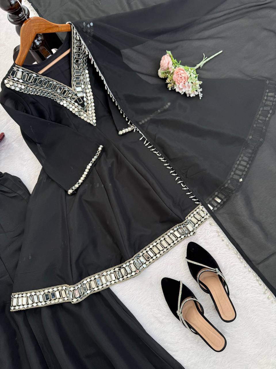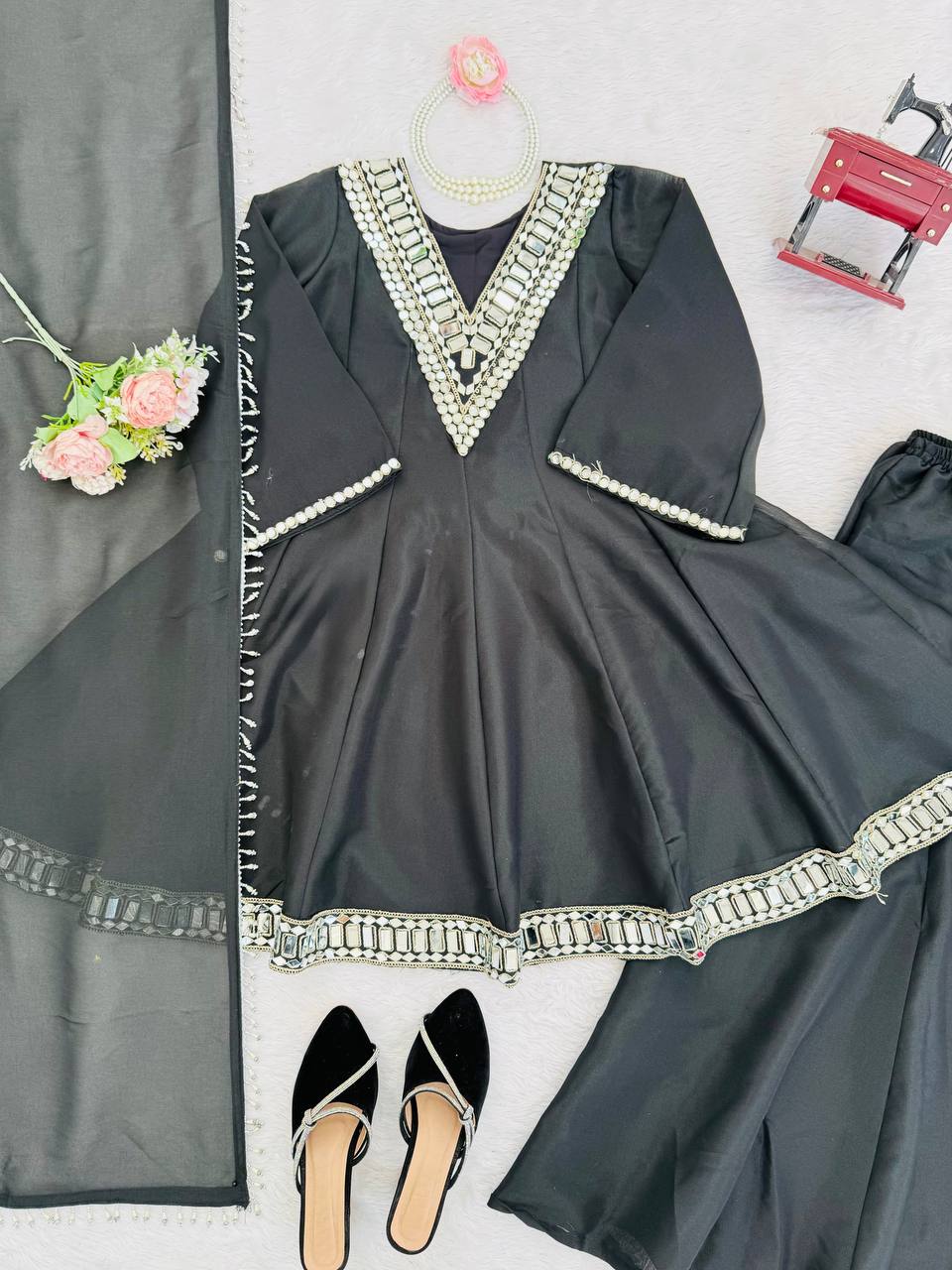 Real Mirror Embroidery Work Cosmos Silk Designer Top Palazzo Set with Dupatta